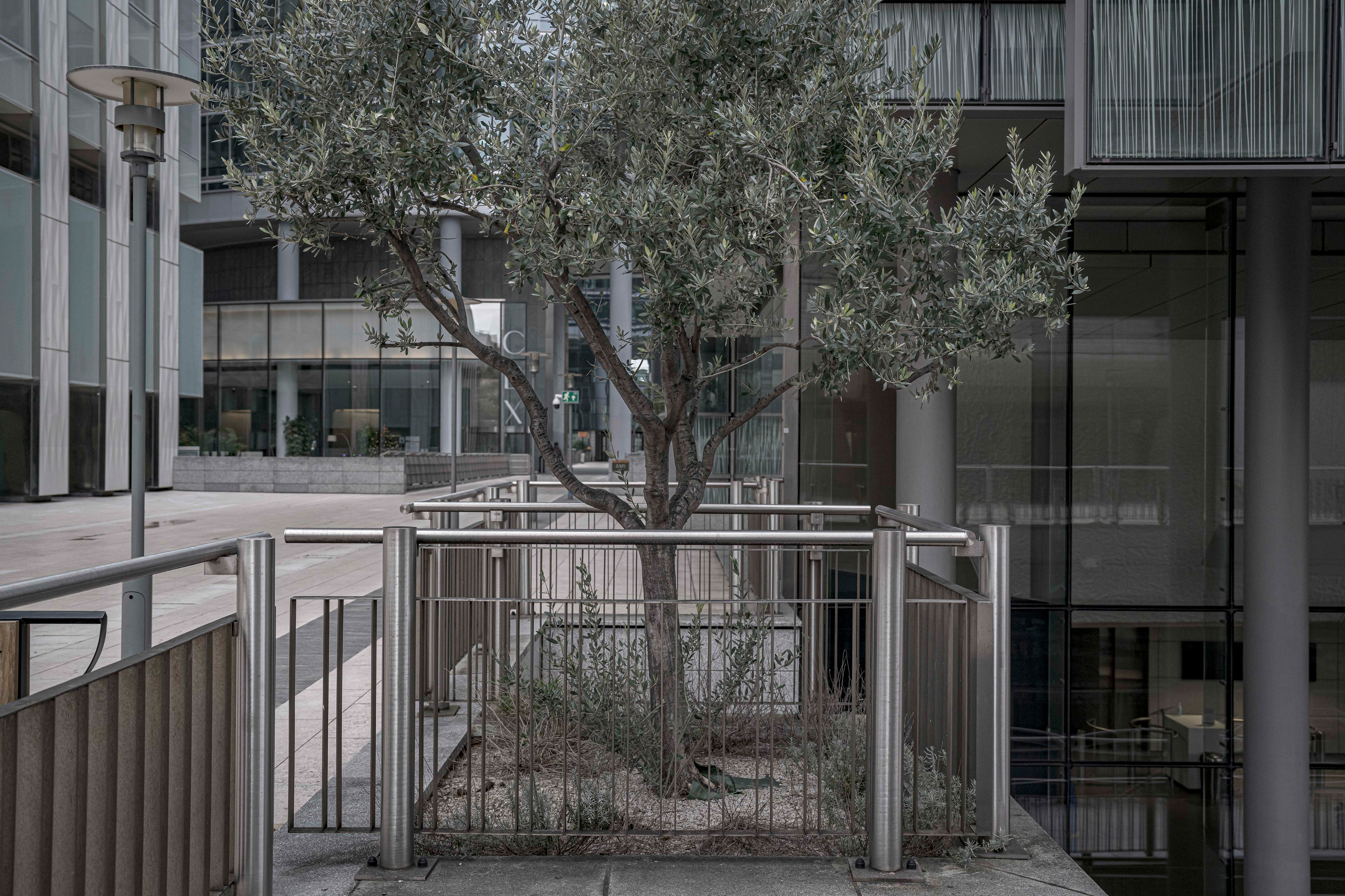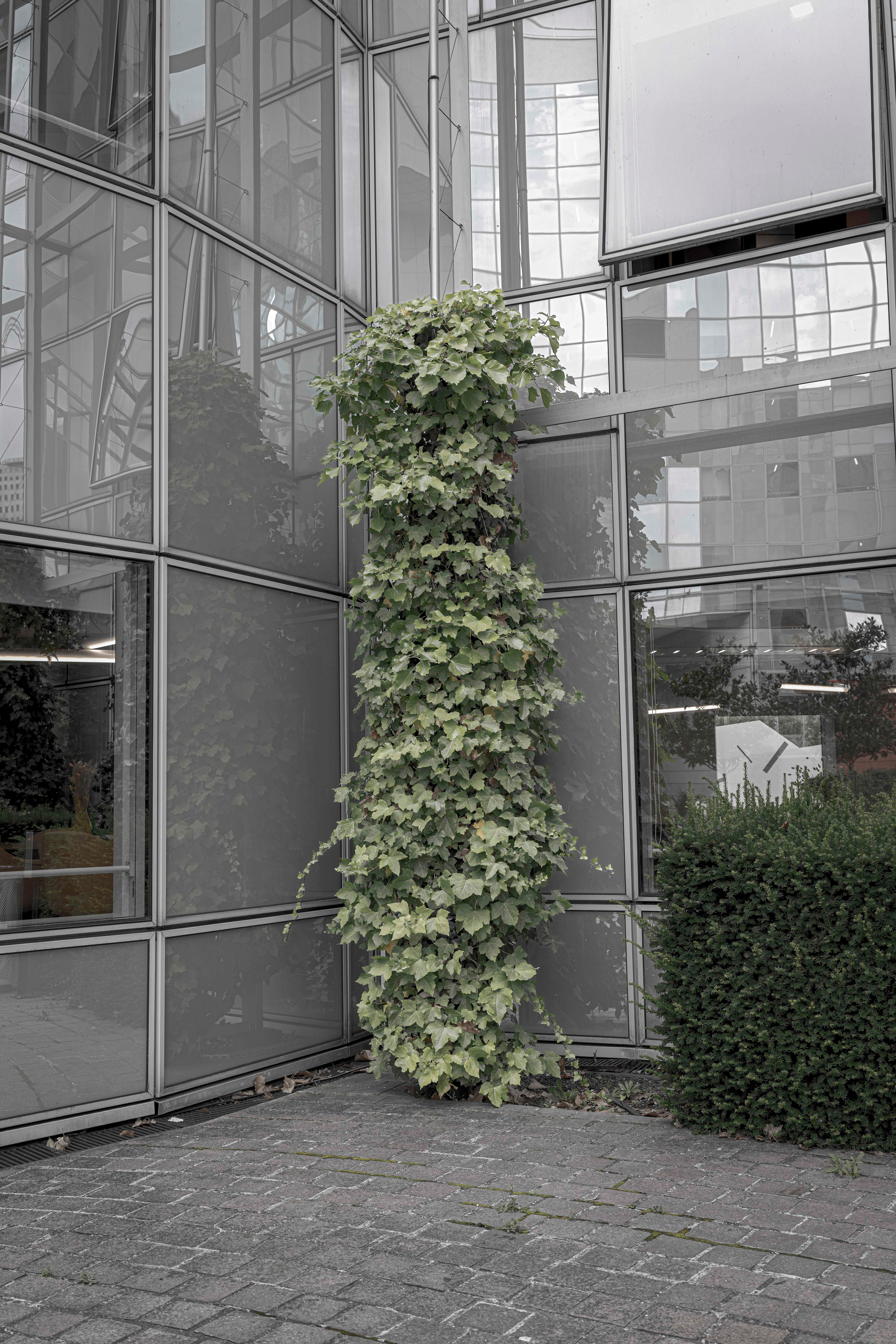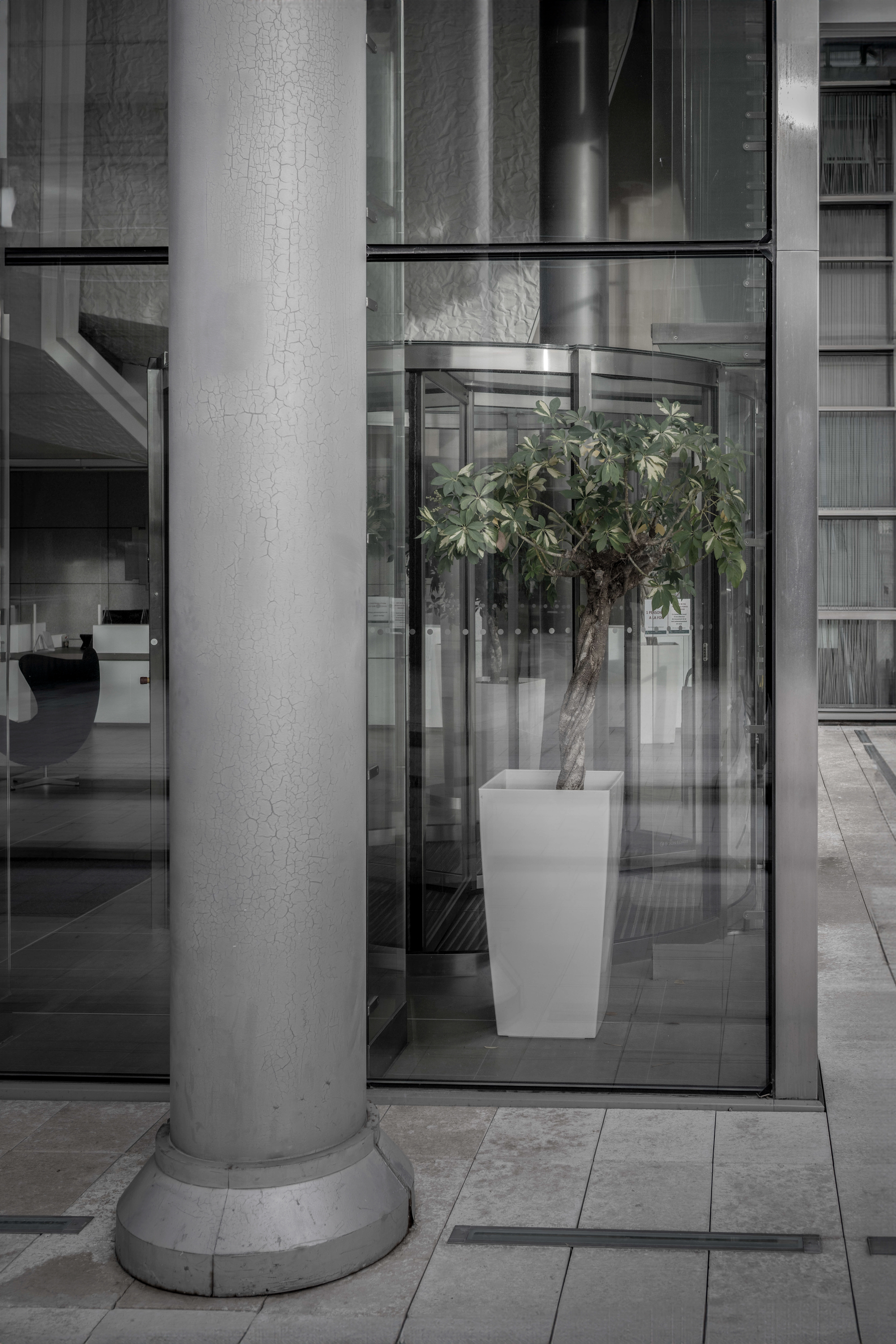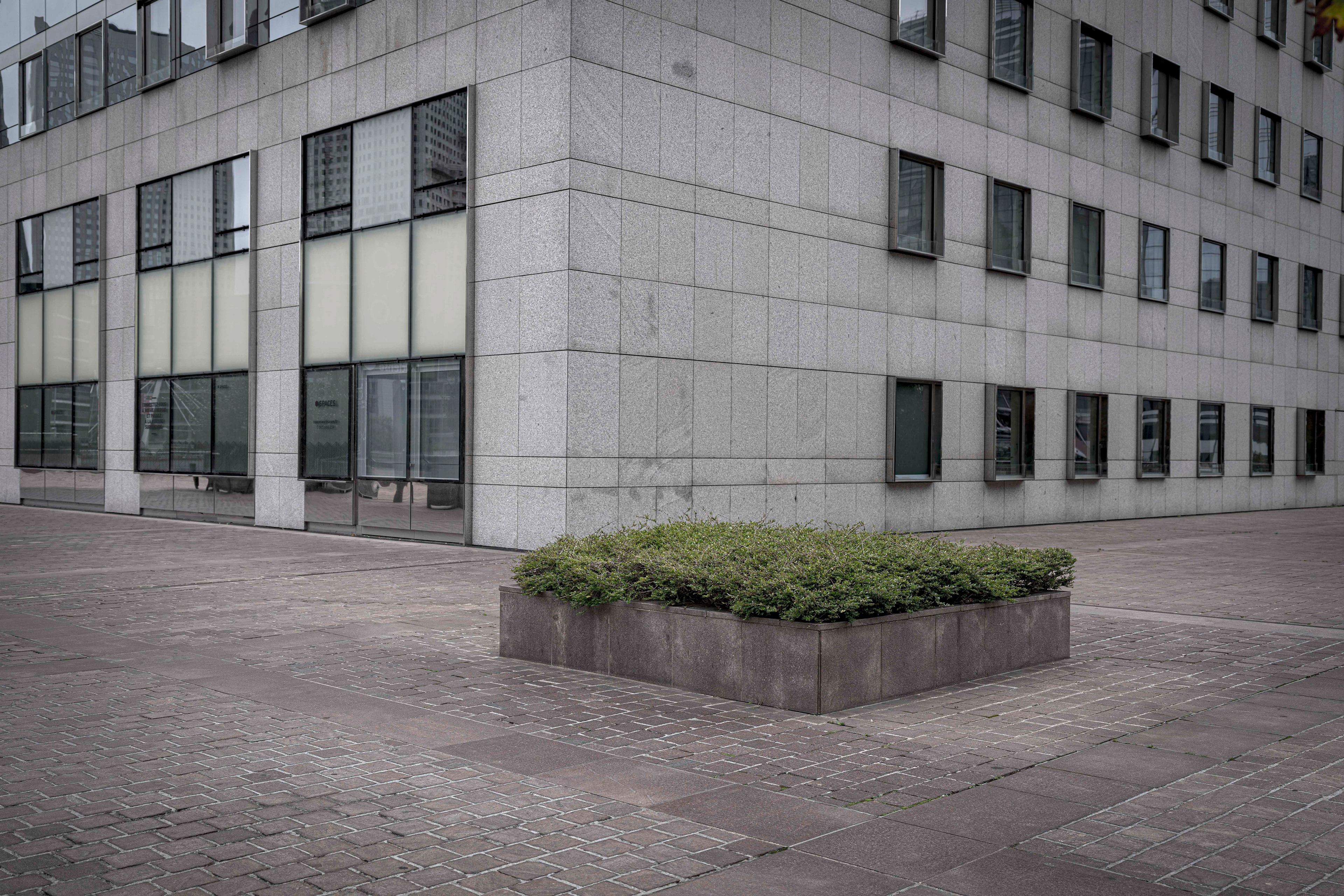 Depuis quelques années, le regard que nous portons sur les animaux en captivité a changé. On a découvert et accepté le concept de maltraitance animale. Plus question de se réjouir lorsque nous voyons un tigre famélique sauter dans des cerceaux lors d’un spectacle de cirque. Plus question de supporter l’emprisonnement, la mise en cage, des êtres vivants qui peuplent la planète. En arpentant, encore et toujours, le granit du quartier de La Défense, en observant les ornements et les aménagements végétaux qui parsèment le parvis et ses environs, pendant un instant j’ai changé ma manière de voir les plantes que l’on dispose dans nos villes : je les ai vues comme ces animaux que nous ne supportons plus de voir enfermés, en cage. Nous pensons rendre jolies nos villes, agrémenter de joie et de beauté nos trottoirs de bitumes avec du vert et de la couleur, mais est-ce réellement un rapport sain à la Nature ? Et si les plantes « souffraient » de cet enfermement ? Et si les humains se trompaient en considérant les plantes comme des objets, des statues, des décorations ? Et si nous maltraitions aussi les végétaux ? Cette série n’apporte pas de réponses à ces questions. Son but est simplement de nous montrer les plantes comme des êtres que l’on a tendance à mettre « en cage », et ainsi à nous interroger sur notre rapport à la Nature, dans nos vies, dans nos villes. Et à réfléchir à une nouvelle façon de vivre avec les végétaux, dans nos villes.
