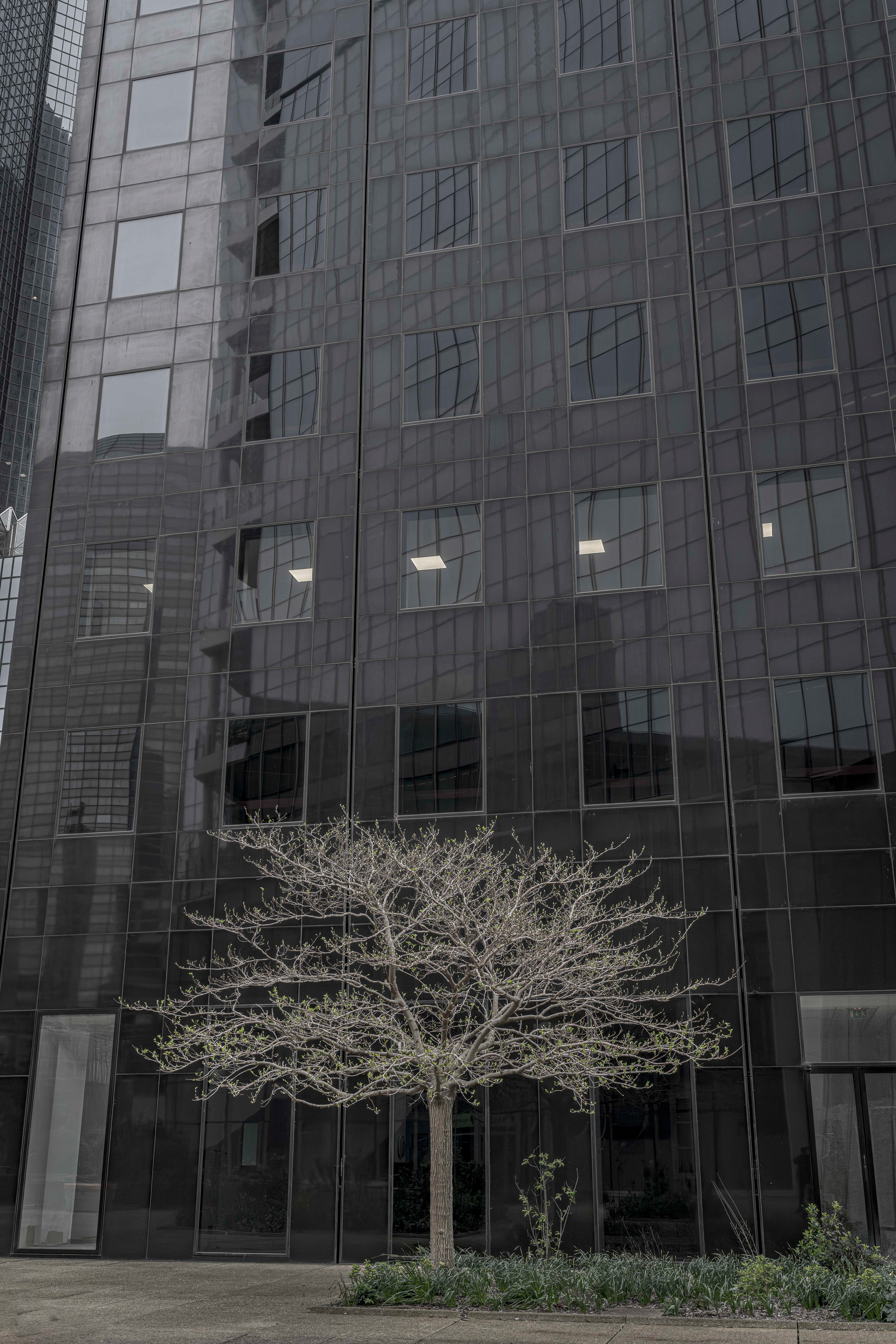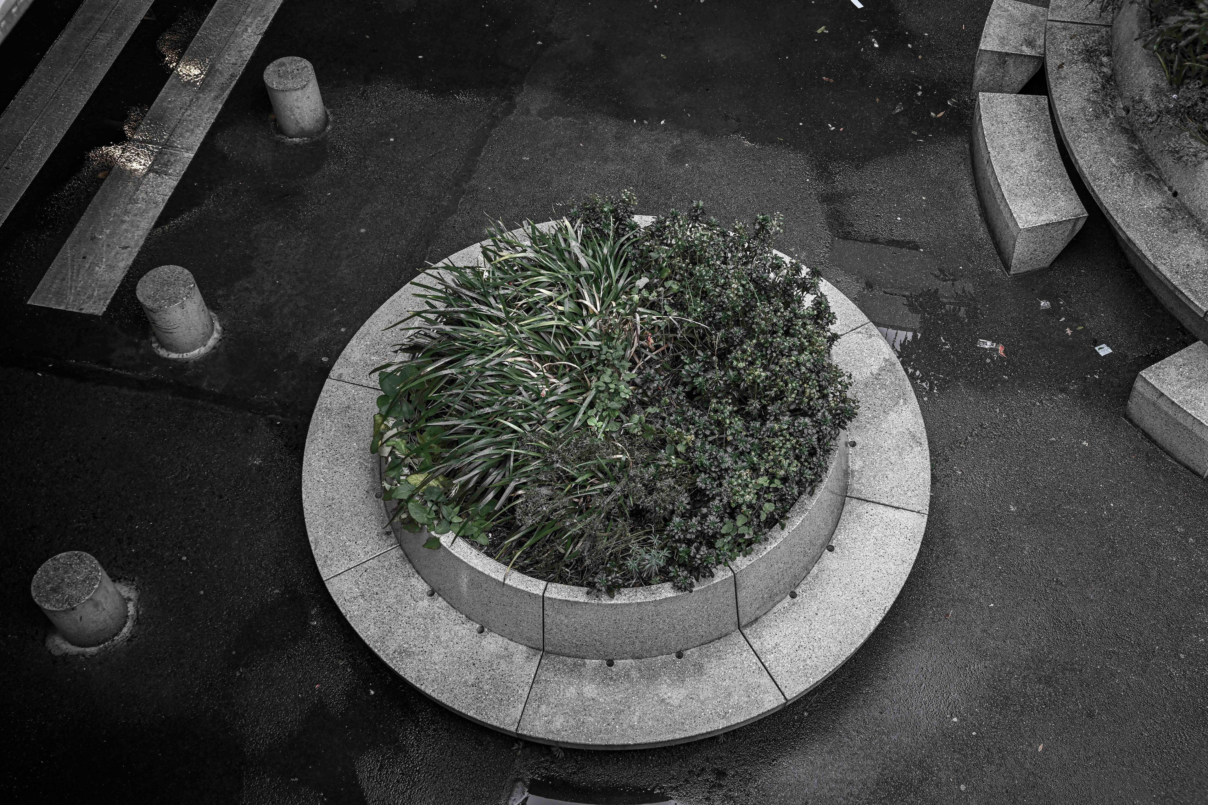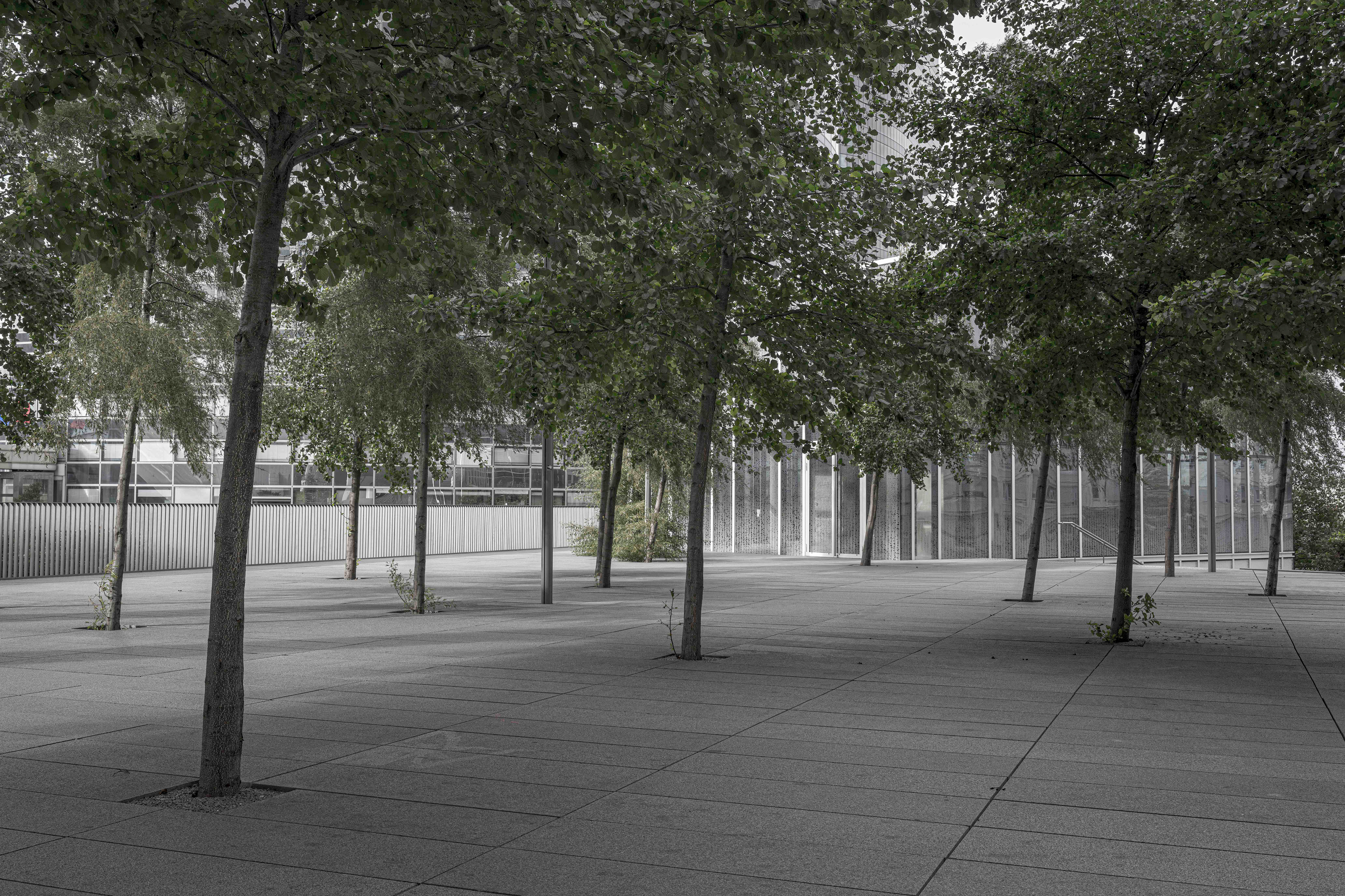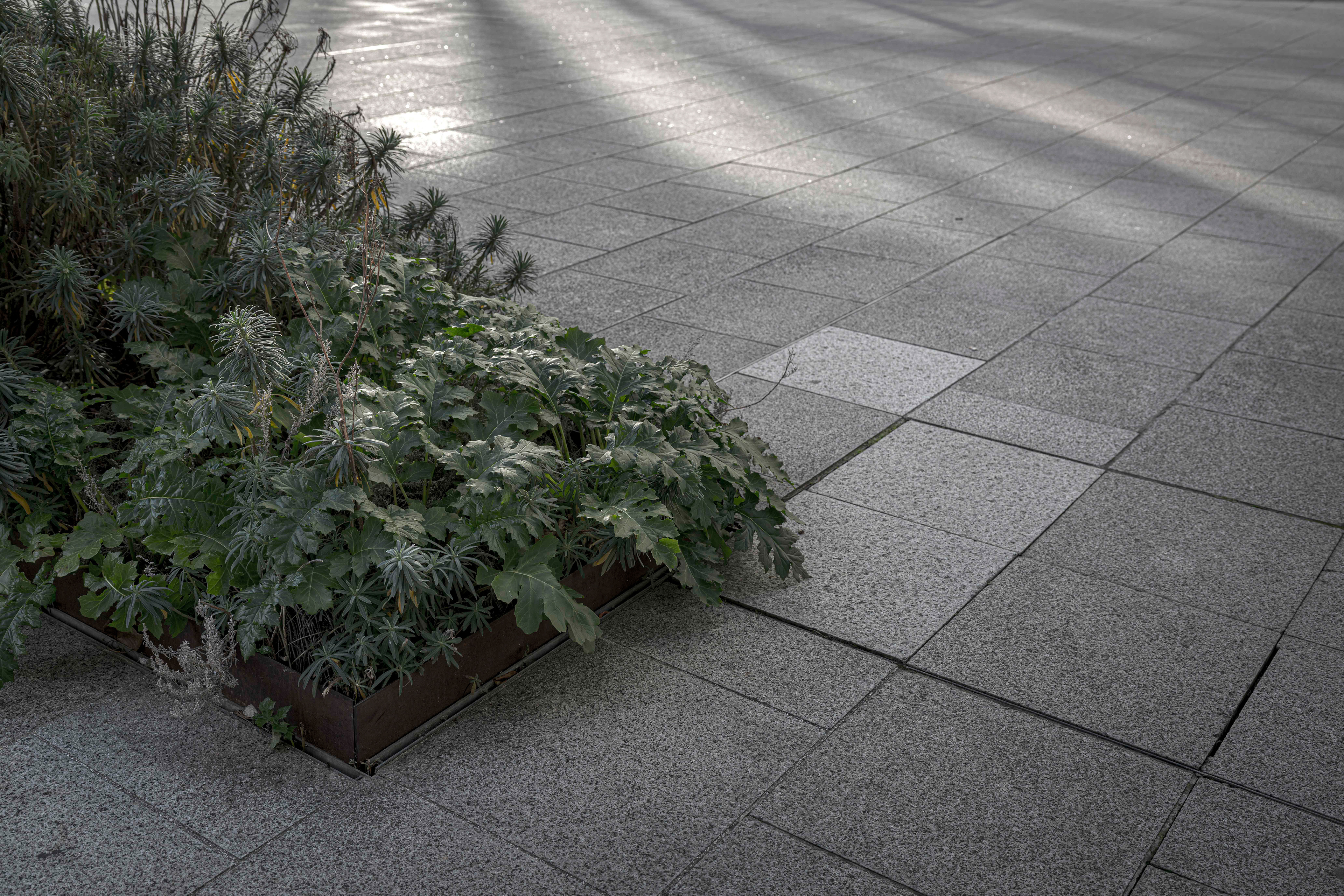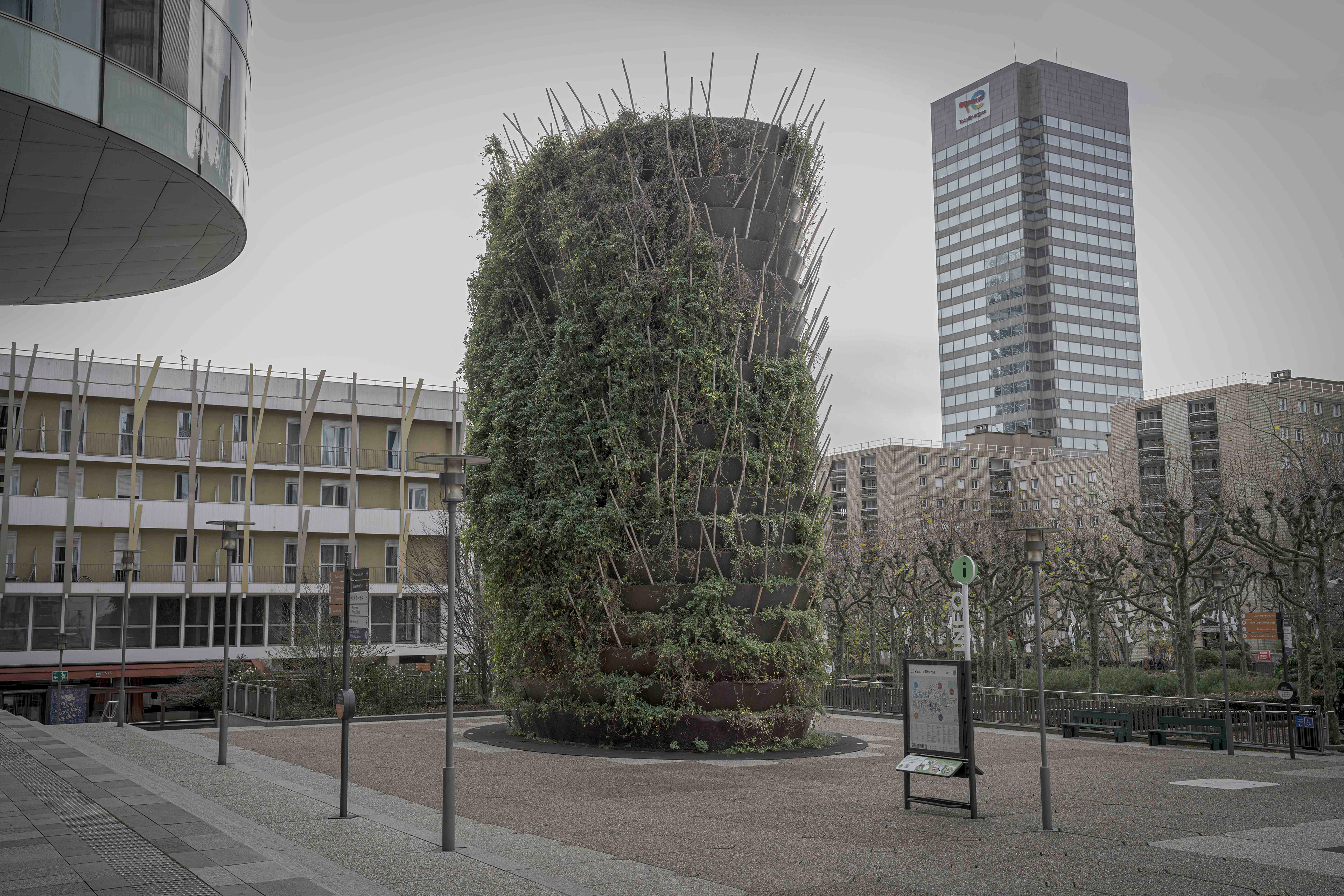 Depuis quelques années, le regard que nous portons sur les animaux en captivité a changé. On a découvert et accepté le concept de maltraitance animale. Plus question de se réjouir lorsque nous voyons un tigre famélique sauter dans des cerceaux lors d’un spectacle de cirque. Plus question de supporter l’emprisonnement, la mise en cage, des êtres vivants qui peuplent la planète. En arpentant, encore et toujours, le granit du quartier de La Défense, en observant les ornements et les aménagements végétaux qui parsèment le parvis et ses environs, pendant un instant j’ai changé ma manière de voir les plantes que l’on dispose dans nos villes : je les ai vues comme ces animaux que nous ne supportons plus de voir enfermés, en cage. Nous pensons rendre jolies nos villes, agrémenter de joie et de beauté nos trottoirs de bitumes avec du vert et de la couleur, mais est-ce réellement un rapport sain à la Nature ? Et si les plantes « souffraient » de cet enfermement ? Et si les humains se trompaient en considérant les plantes comme des objets, des statues, des décorations ? Et si nous maltraitions aussi les végétaux ? Cette série n’apporte pas de réponses à ces questions. Son but est simplement de nous montrer les plantes comme des êtres que l’on a tendance à mettre « en cage », et ainsi à nous interroger sur notre rapport à la Nature, dans nos vies, dans nos villes. Et à réfléchir à une nouvelle façon de vivre avec les végétaux, dans nos villes.